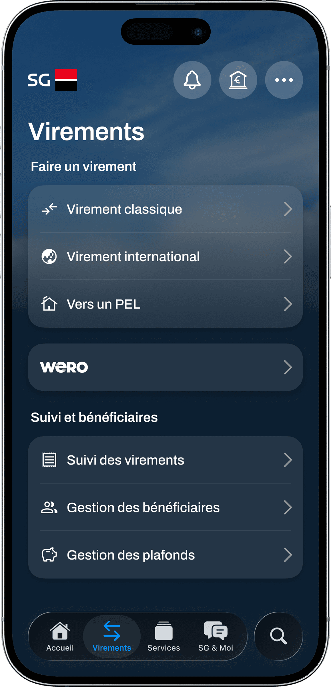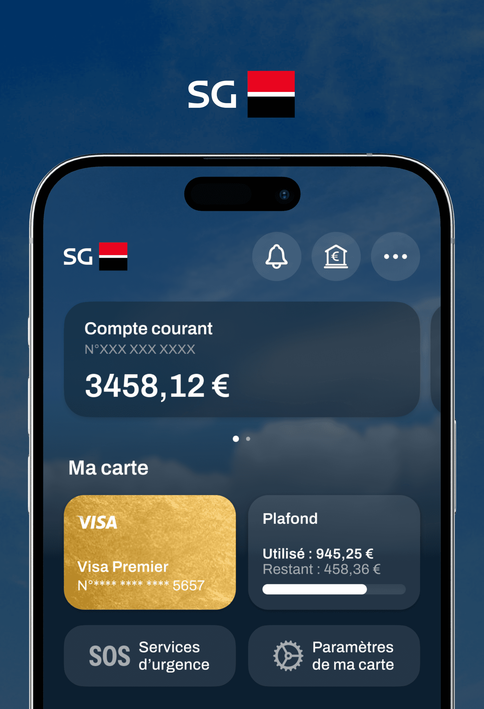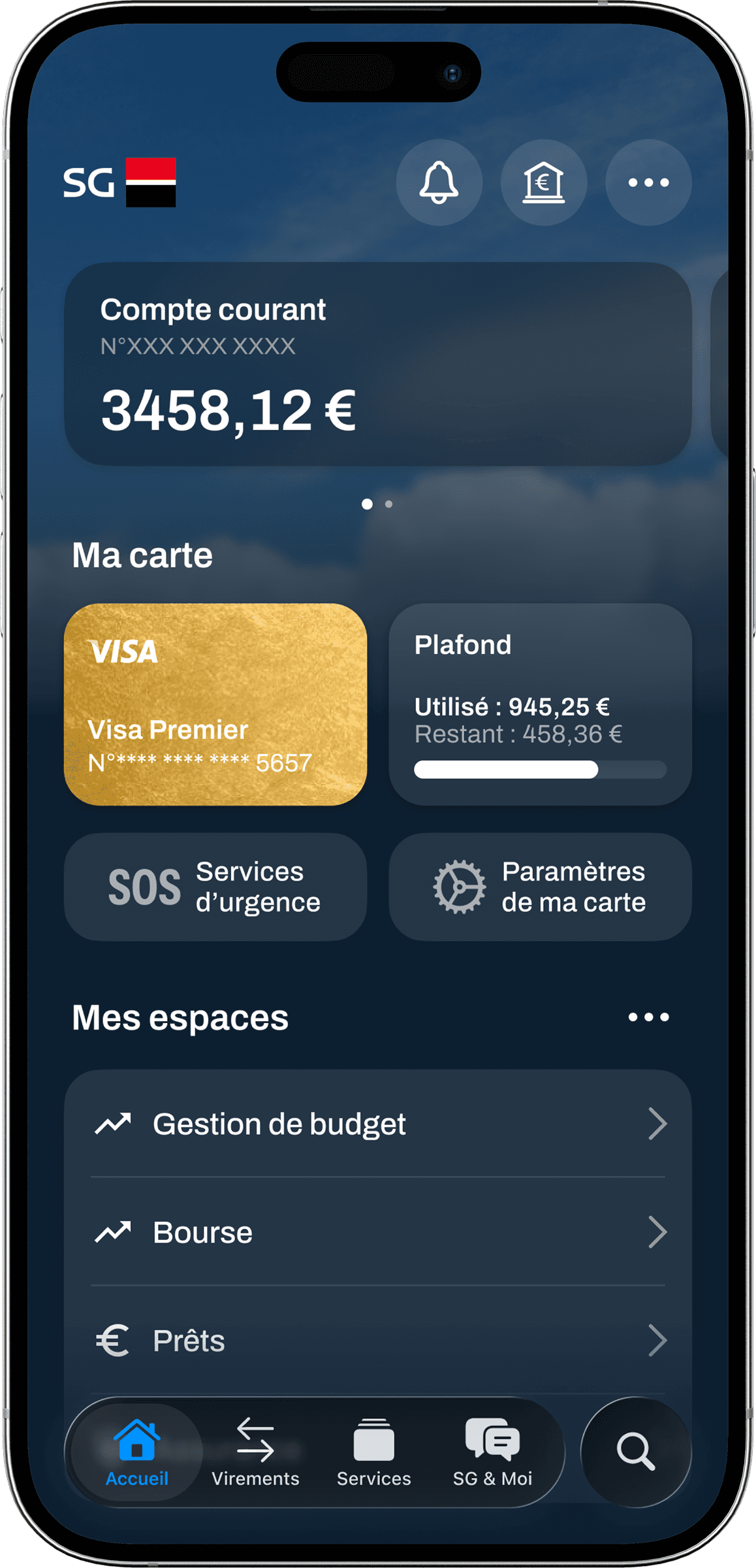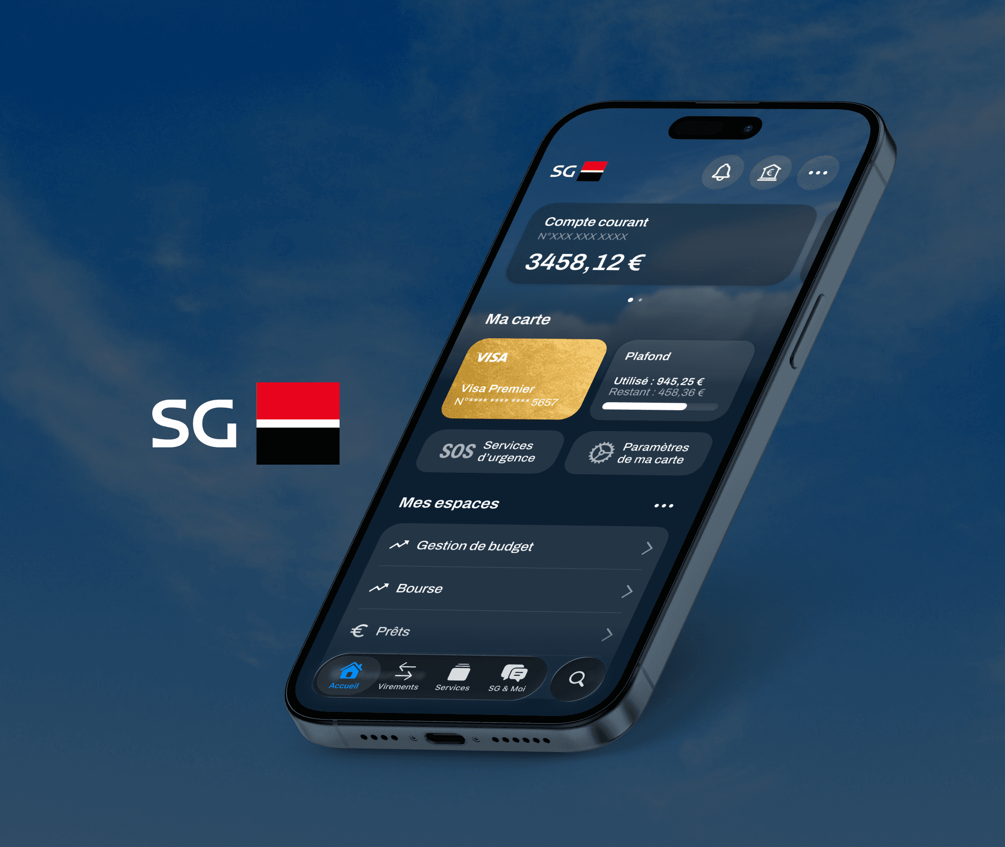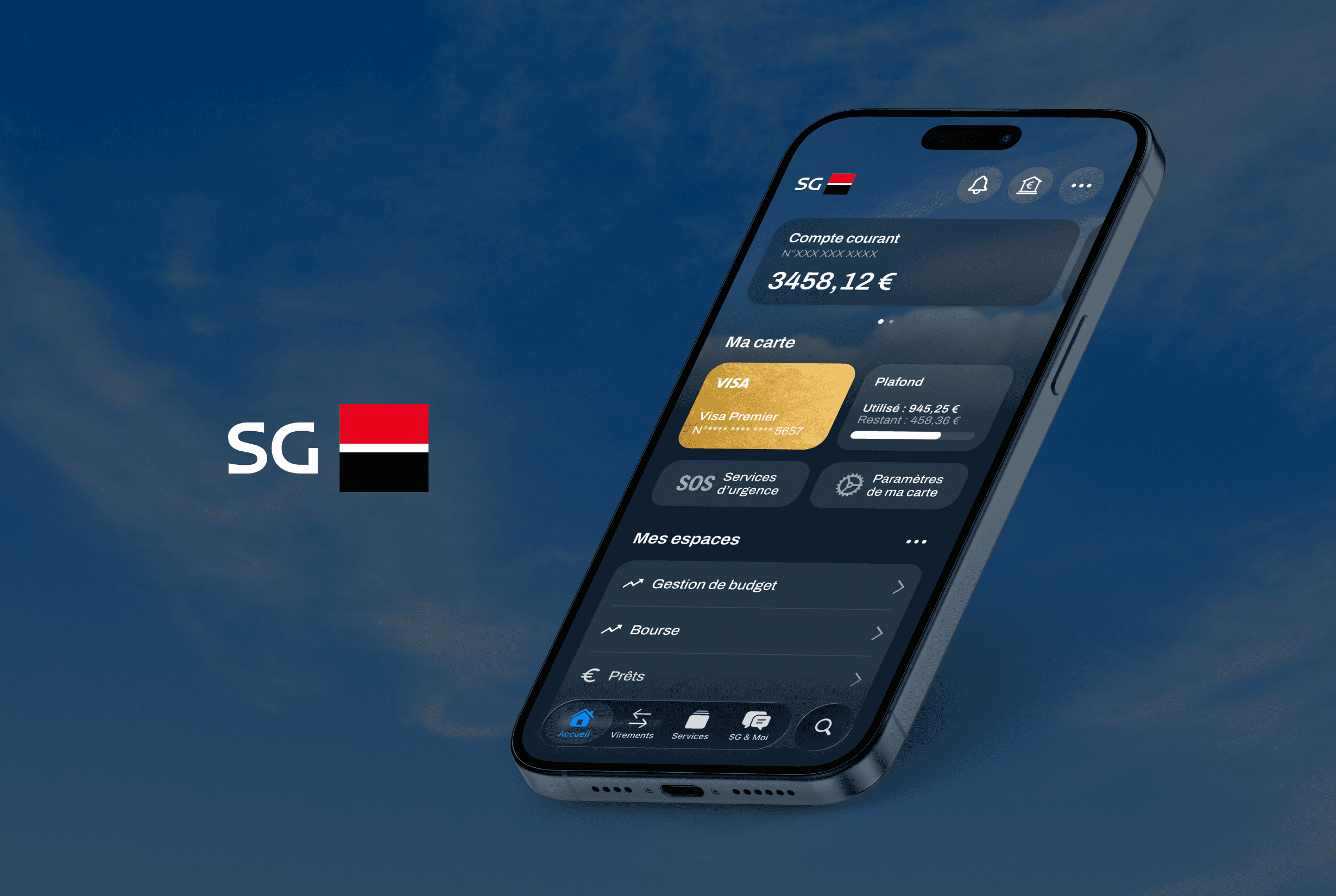 I designed a mobile app for the French bank Société Générale that takes into account recent user interface practices for iOS. This work is fictional.